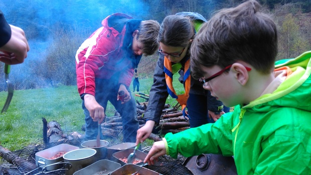 Elke avond kook je in groepjes je eigen warme maaltijd. Dit wordt in stapjes steeds primitiever. Eerst koken we bijvoorbeeld op gas. Al snel krijg je de fijne kneepjes van het aanleggen en stoken van een goed houtvuur onder de knie. Daarna kook je de warme maaltijden op een zelf gestookt vuur of in een primitieve oven.