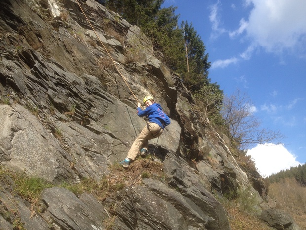 Er zijn outdoor activiteiten in het programma verweven. Zo ga je onder andere - onder begeleiding van een ervaren instructeur - langs een rotswand omhoog klimmen en afdalen!