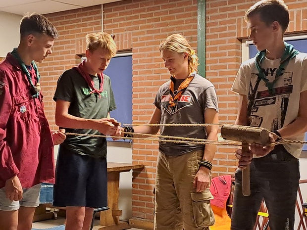 's Avonds introduceren we de onderdelen van de touwburg, die je maandagochtend gaat bouwen. Je maakt vast een plan van aanpak hoe jullie die gaan bouwen, en welke materialen jullie nodig hebben.