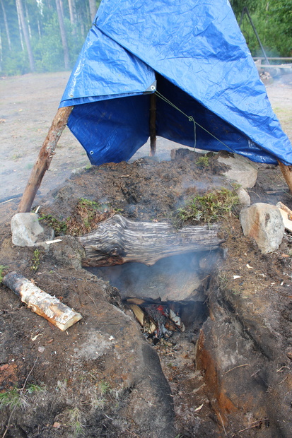 Daar slaap je in bivakhutjes, onder een tarp, afdakzeil of in een zelfgemaakte schuilhut.