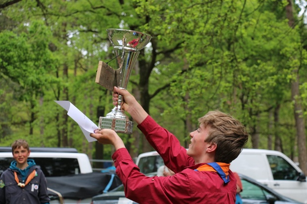 Bij de sluiting krijgt de "Opper Trapper" de Scoutdoor wisselbeker uitgereikt.